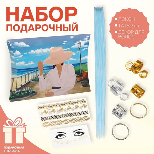 Набор Любовь, локон на заколке, переводные тату, декор для волос