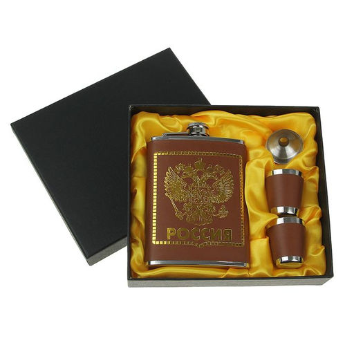 Подарочный набор "Двуглавый орёл" 4 в 1: фляжка 240 мл, воронка, 2 рюмки, коричневая, 17 х 19 см 451