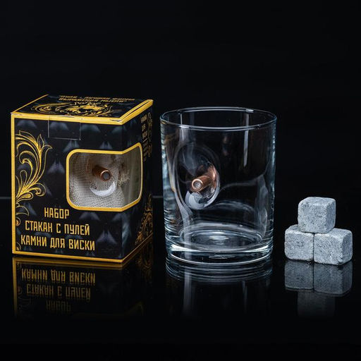 Набор стакан и камни для виски "Виски" с пулей, 3 камня в мешочке, 250 мл