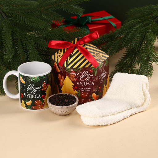 Подарочный набор Верь в чудеса: чай чёрный, вкус: глинтвейн, 50 г., кружка 300 мл., носки 36 - 39 размер