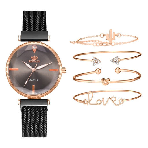 Женский подарочный набор Rinnady 5 в 1: наручные часы и 4 браслета