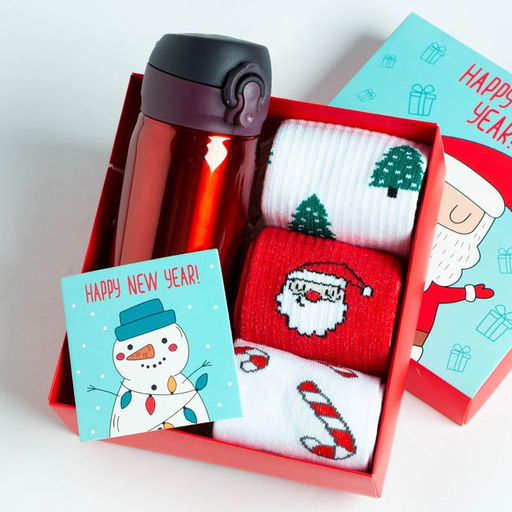 Новогодний подарочный набор термос и носки KAFTAN New Year, р-р 36-39