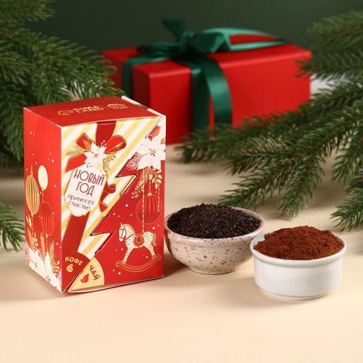 Подарочный набор Всё исполнит Новый год: чай чёрный, со вкусом: лесные ягоды 50 г,, кофе со вкусом: амаретто, 50 г.,