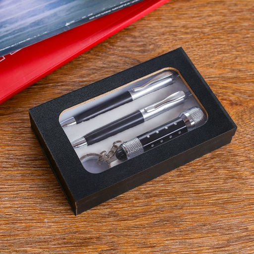 Набор подарочный 3в1 (2 ручки, фонарик черный)