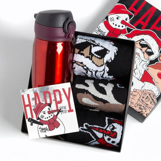 Новогодний подарочный набор термос и носки 3 пары KAFTAN Bad Santa, размер 41-44 (27-29 см)