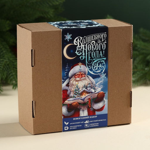Подарочный набор Волшебного Нового года: чай чёрный со вкусом: пряный апельсин 50 г., молочный шоколад 70 г., кружка 300 мл., открытка
