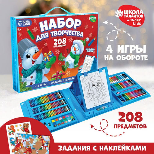 Набор для творчества Веселый снеговик с мольбертом, 208 предметов