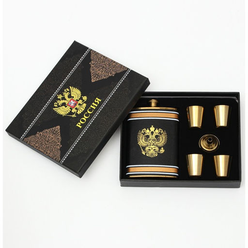Подарочный набор 6 в 1 "Герб": фляжка 270 мл, 4 стопки по 40 мл, воронка