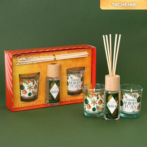 Набор новогодних свечей с аромадиффузором "Волшебного Нового года", аромат белая ель