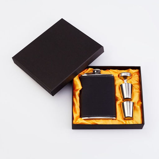 Подарочный набор 4 в 1: фляжка 240 мл, 2 стопки, воронка, черный