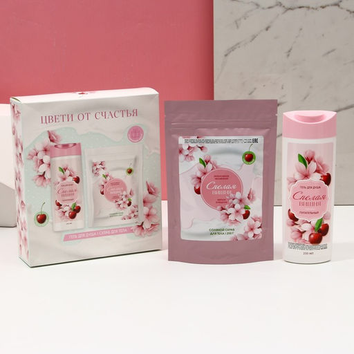 Подарочный набор косметики Цвети от счастья!: гель для душа 250 мл и соляной скраб для тела, ЧИСТОЕ СЧАТЬЕ