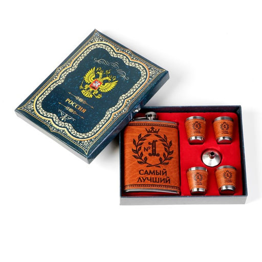 Подарочный набор 6 в 1 "Самый лучший": фляжка 270 мл, 4 стопки 30 мл, воронка