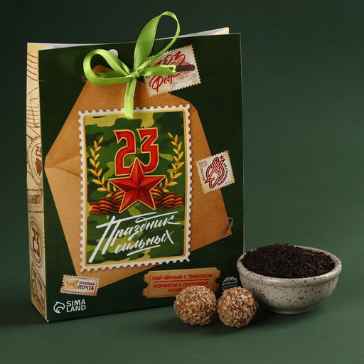 Набор Праздник сильных: чай чёрный с лимоном 50 г., шоколадные конфеты 100 г.
