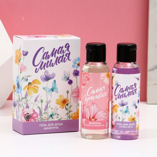 Гель для душа и шампунь для волос 2 х 100 мл Самая милая , подарочный набор, аромат полевые цветы, ЧИСТОЕ СЧАСТЬЕ