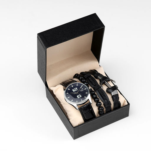 Мужской подарочный набор "Якорь" 2 в 1: наручные часы, браслет