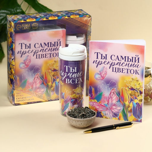 Набор Самый прекрасный цветок: чай зелёный с жасмином 20 г., термостакан 350 мл., ежедневник 80 листов, ручка