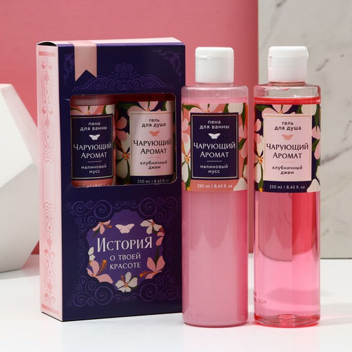 Гель для душа и пена для ванны 2 х 250 мл История о твоей красоте, подарочный набор, аромат малиновый мусс и клубничный джем, ЧИСТОЕ СЧАСТЬЕ