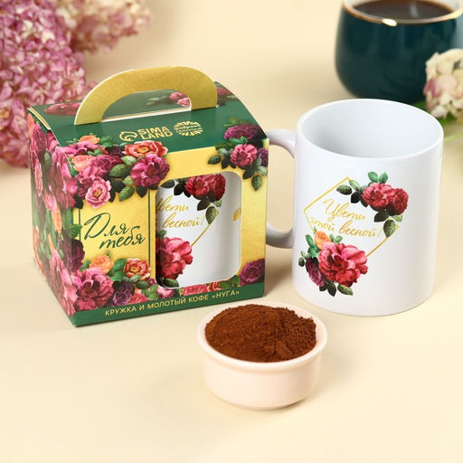 Набор Расцветай от любви: кофе молотый со вкусом: нуга 30 г., кружка 300 мл.