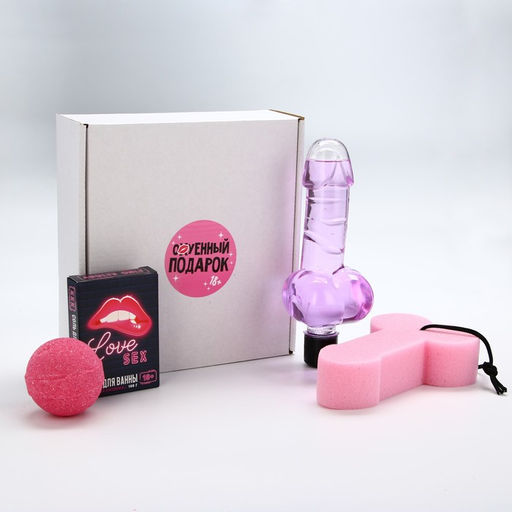 Подарочный набор косметики Очаровательный подарок, гель для душа 300 мл, мочалка, соль и бомбочка для ванны, 18+, ЧИСТОЕ СЧАТЬЕ