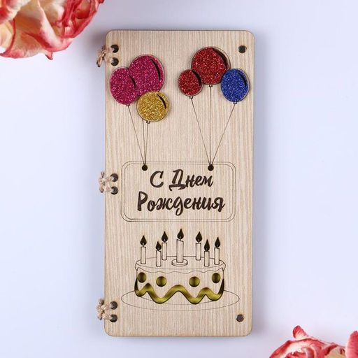 Открытка-конверт на магнитах "С Днём Рождения!" торт и свечи