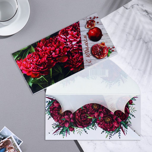 Цена за 10 шт. Конверт для денег С Юбилеем! гранат, 17х8,5 см