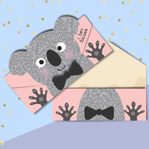 Цена за 5 шт. Конверт для денег формовой С Днём Рождения, коала, 17,5 х 10,5 см