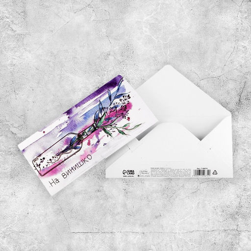 Цена за 5 шт. Конверт для денег на акварельном картоне На винишко, 16,5 8 см