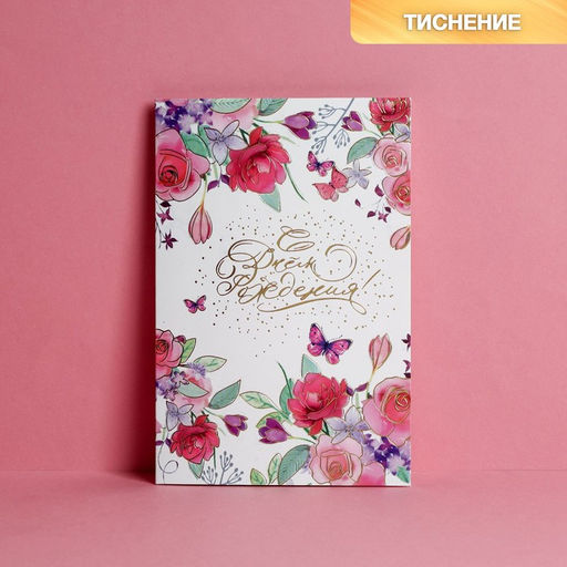 Цена за 10 шт. Открытка С Днем Рождения, нежные цветы, тиснение, 12 18 см