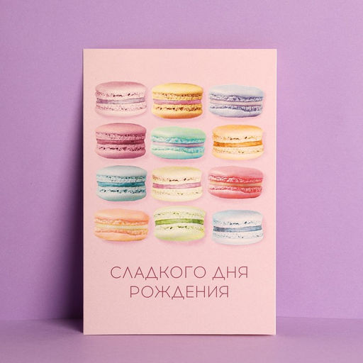 Цена за 10 шт. Открытка Сладкого Дня Рождения, макаруны, частичный УФ-лак, 12 18 см