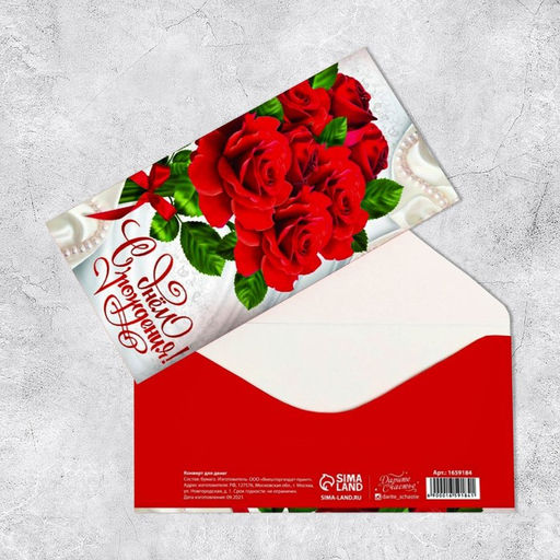 Цена за 10 шт. Конверт для денег С Днём Рождения, жемчуг и розы, 16,5 8 см