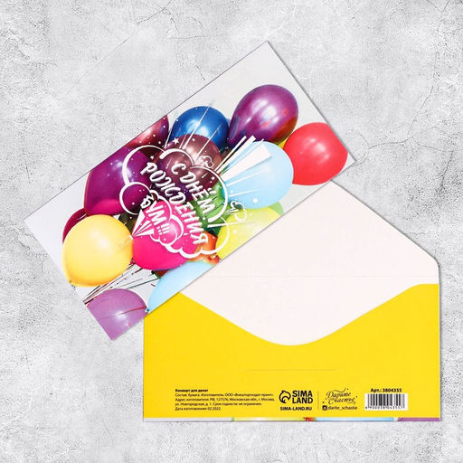 Цена за 10 шт. Конверт для денег "С Днём Рождения!" шарики, 16,5 х 8 см