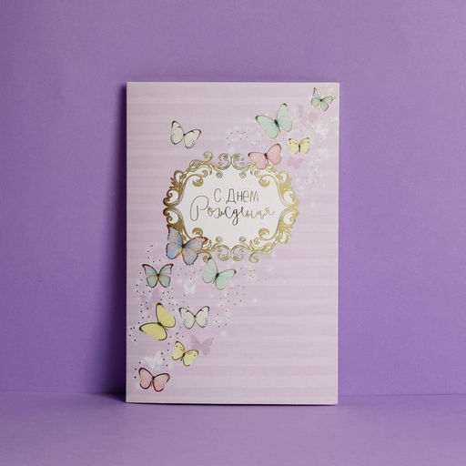 Цена за 10 шт. Открытка С Днем Рождения, бабочки, тиснение, 12 18 см