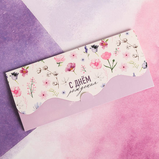 Цена за 10 шт. Конверт для денег формовой "С Днём Рождения!" цветочная композиция