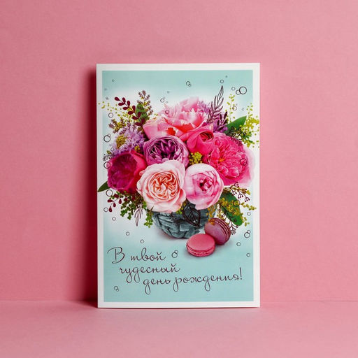 Цена за 10 шт. Открытка В твой День Рождения, пионы, 12 18 см