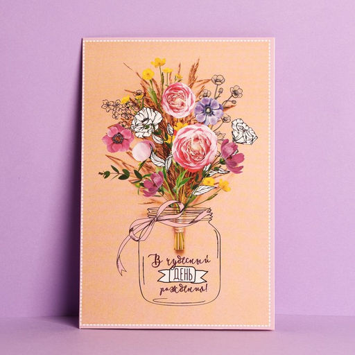 Цена за 10 шт. Открытка В чудесный День рождения! букет цветов, 12 18 см