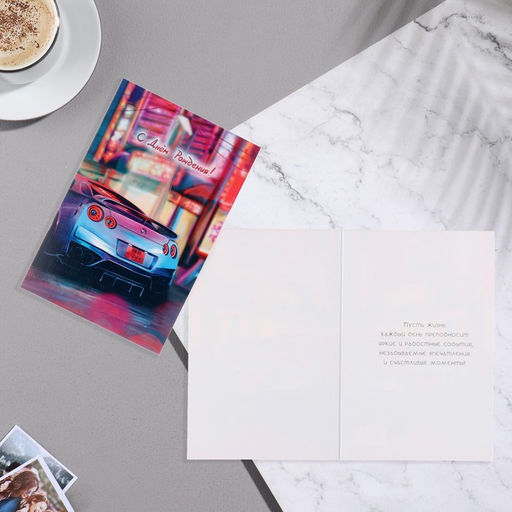 Цена за 5 шт. Отрытка "С Днем Рождения!" машина, город, 15 x 10,5 см