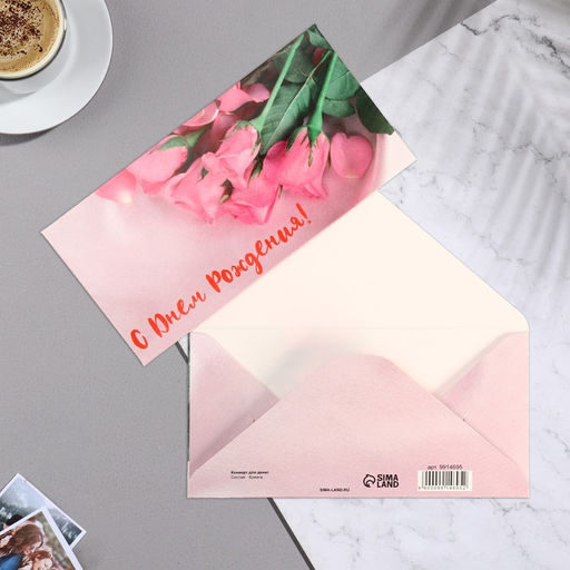 Цена за 10 шт. Конверт для денег "С Днём Рождения!" розовые розы, 16,5х8 см
