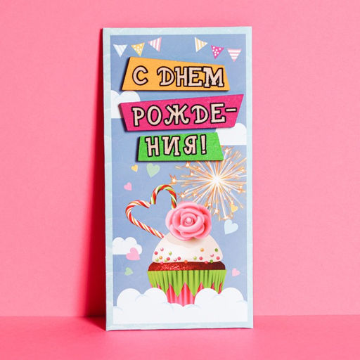 Конверт для денег с деревянным элементом "С Днем Рождения!" кекс