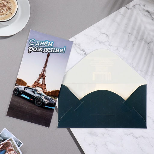 Цена за 10 шт. Конверт для денег "С Днём Рождения!" глиттер, башня, автомобиль, 8,5х17 см
