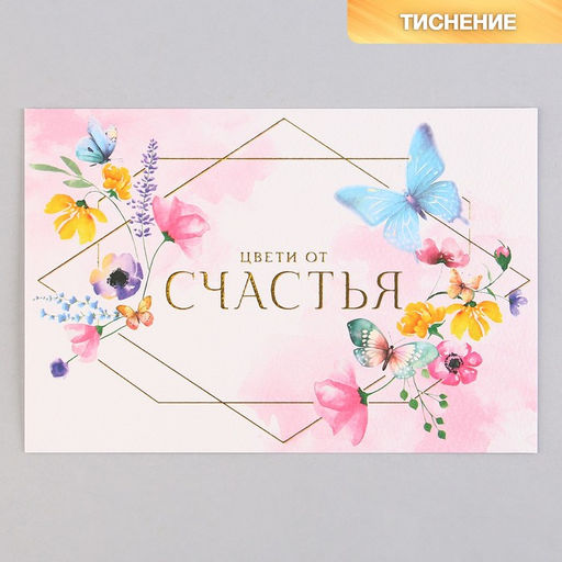 Цена за 5 шт. Поздравительная открытка на акварельном картоне с тиснением Цвети от счастья, 15 10 см