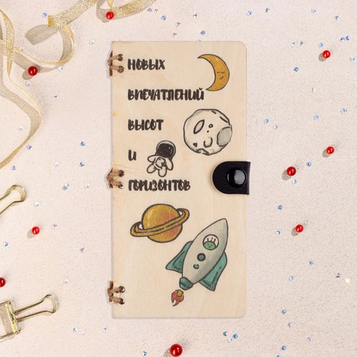 Конверт деревянный "Новых высот!" ручная работа, светлый, ракета, 16,5х8 см