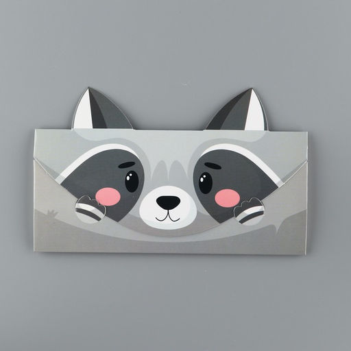 Цена за 5 шт. Конверт для денег формовой Енот, 17.5 х10 см