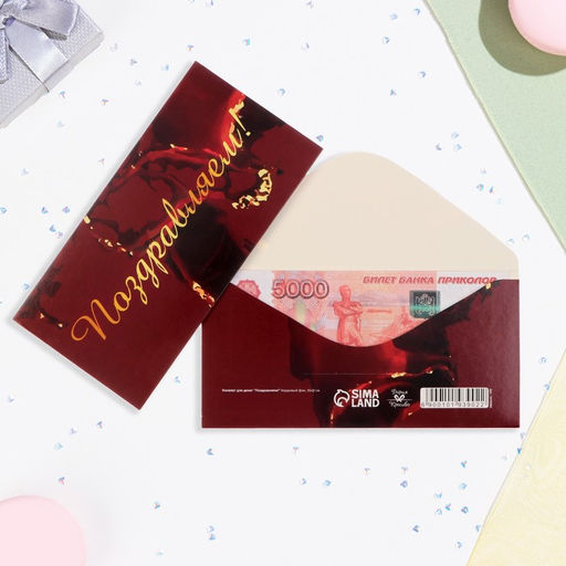 Цена за 10 шт. Конверт для денег "Поздравляем!" бордовый фон, 16х8 см