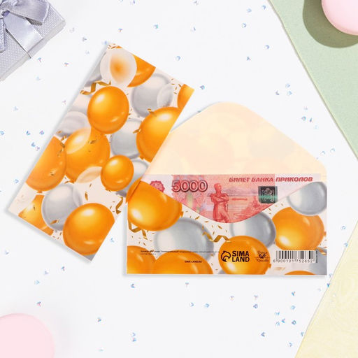 Цена за 10 шт. Конверт для денег "Универсальный" воздушные шары, серый цвет, 16х8 см