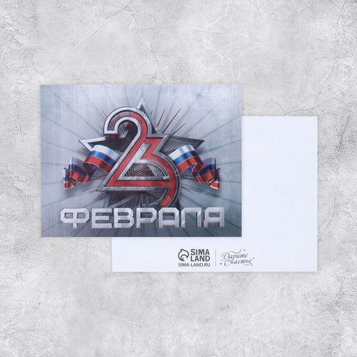 Цена за 20 шт. Открытка поздравительная "С 23 Февраля!" серый фон, 8 х 6 см