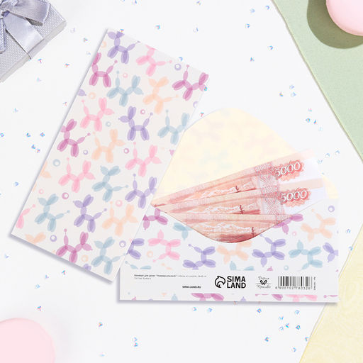 Цена за 10 шт. Конверт для денег "Универсальный" собака из шаров, 16х8 см