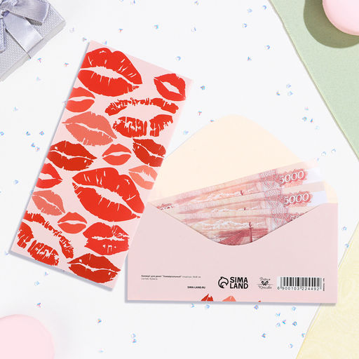 Цена за 10 шт. Конверт для денег "Универсальный" поцелуи, 16х8 см