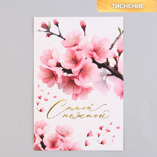 Цена за 5 шт. Поздравительная открытка на акварельном картоне с тиснением Самой нежной, 15 10 см