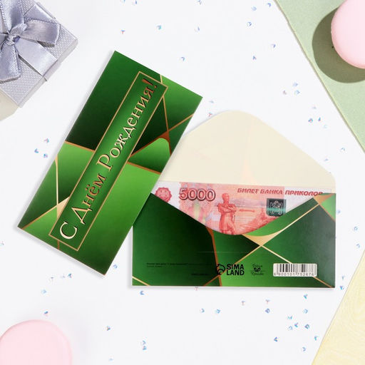 Цена за 10 шт. Конверт для денег "С Днём Рождения!" зелёный цвет, 16х8 см