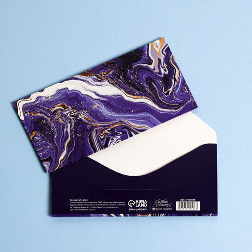 Цена за 10 шт. Конверт для денег Синий мрамор, 16,5 8 см